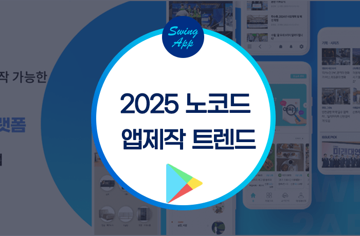 개발자 없이 앱 만들기! 2025 노코드 앱제작 트렌드 안녕하세요, 스윙투앱(Swing2App) 입니다. 스윙투앱은 개발자 없이도 누구나 손쉽게 어플제작 · 앱제작을 할 수 있는 국내 최초 노코드 앱제작 플랫폼입니다. 코딩 지식이 없어도